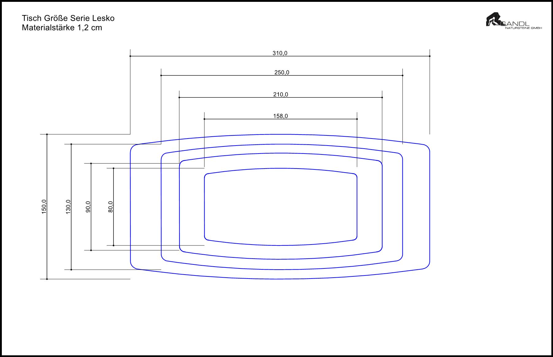 Sondergrößen und Formen sind auf Wunsch möglich. ( Rohplattengröße 320x160 cm )